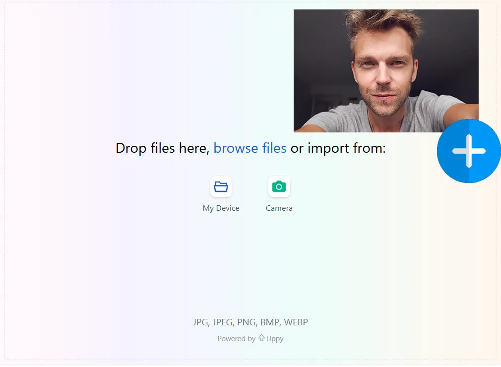 Trascina e rilascia la tua foto originale nello strumento oppure usa il pulsante 'Aggiungi file'.